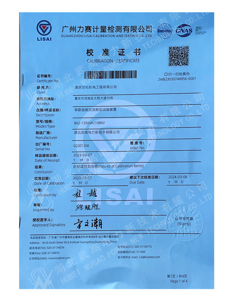 裝置用于交聯電纜、水力發電機、主變、線GIS等的交流耐壓試驗。