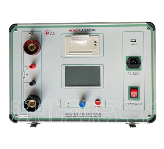 The HLY600A high-current micro-ohmmeter (loop resistance tester) is designed based on the new power execution standard DL/T845.4-2004 of the People's Republic of China,utilizing a combination of high-frequency switching power supply technology and digital circuit technology。It is suitable for measuring the loop resistance of switch control equipment. Its test currents adopt the DC 100A and 200A recommended by national standards。 It can directly measure the loop resistance at a current of 100A,as well as at 200A, 400A, or 600A。The final test results are displayed digitally。This instrument provides accurate measurements and stable performance, meeting the requirements of on-site high-voltage switch maintenance by power and electricity supply departments,as well as loop resistance testing in high-voltage switch factories。